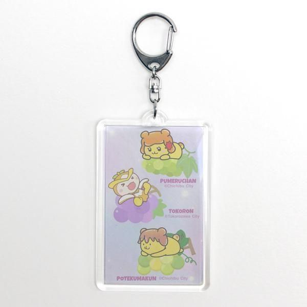 透明トレカをキーホルダーに挟んだものです。かばんにつけたりして持ち歩けます。