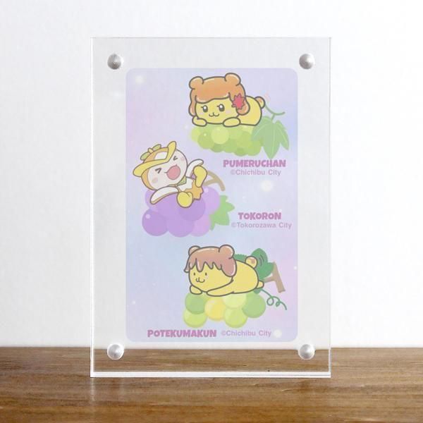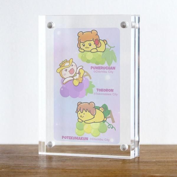 トレカをアクリル製の透明ブロックに挟んでいます。両面から見て楽しめます。