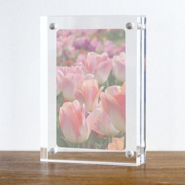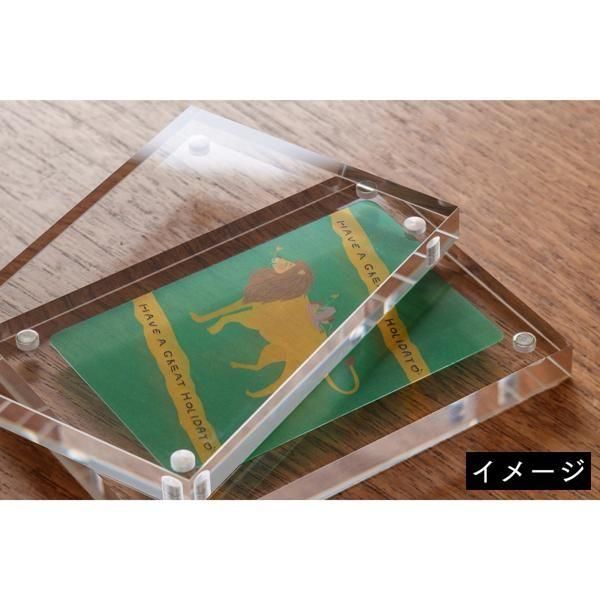 トレカをアクリル製の透明ブロックに挟んでいます。両面から見て楽しめます。