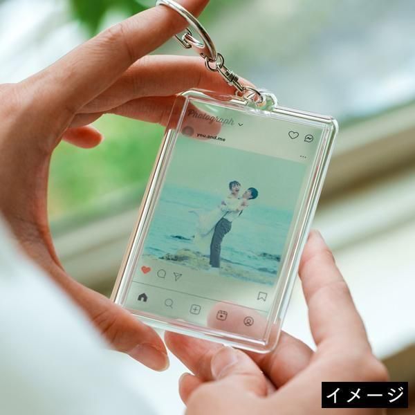 透明トレカをキーホルダーに挟んだものです。かばんにつけたりして持ち歩けます。