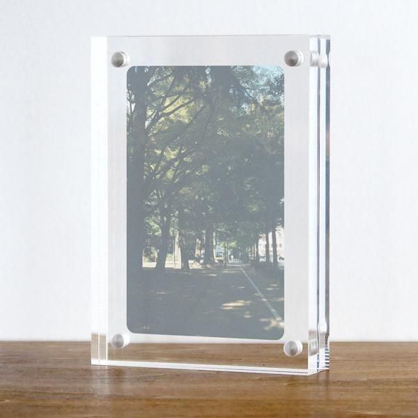 トレカをアクリル製の透明ブロックに挟んでいます。両面から見て楽しめます。