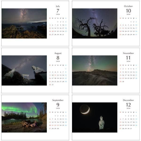 星空写真家・タイムラプスクリエイターの成澤広幸が、2025年に撮影した写真を使用して制作したカレンダーです。2025年各月に撮影された代表的な写真を中心に構成されています。