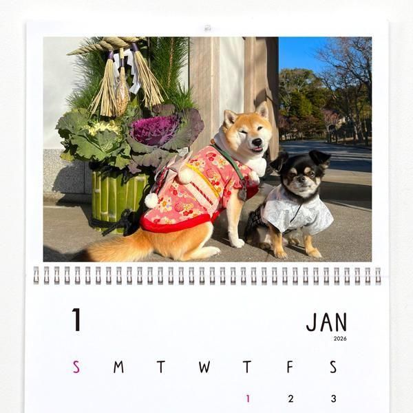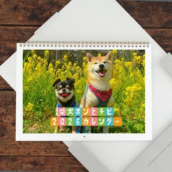 柴犬ポンとチビの2026壁掛けカレンダーが初発売٩( 'ω' )و季節ごとのページをめくって楽しんでね(^^)