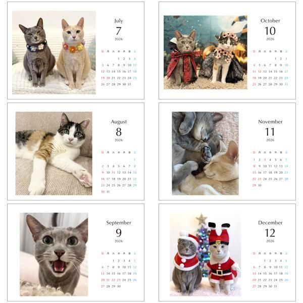 よもぎ・きなこ・おはぎの3匹が、季節に合わせたコスプレ姿で一年を彩ります。