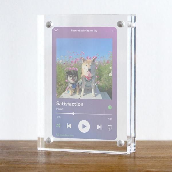 トレカをアクリル製の透明ブロックに挟んでいます。両面から見て楽しめます。