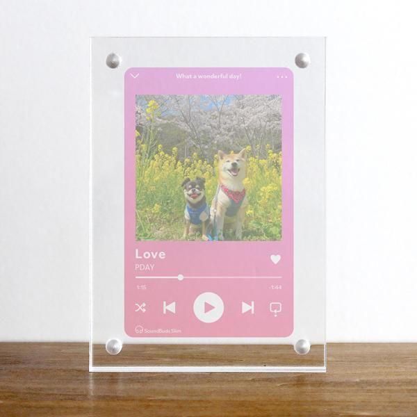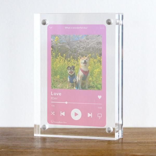 トレカをアクリル製の透明ブロックに挟んでいます。両面から見て楽しめます。