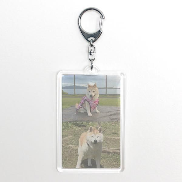 透明トレカをキーホルダーに挟んだものです。かばんにつけたりして持ち歩けます。