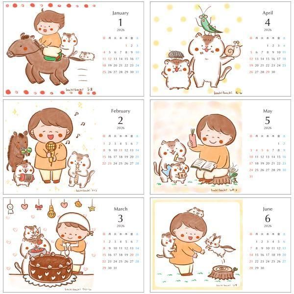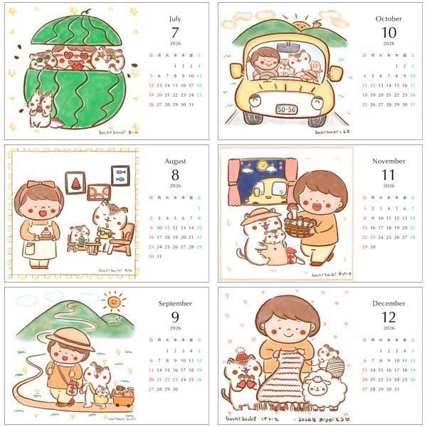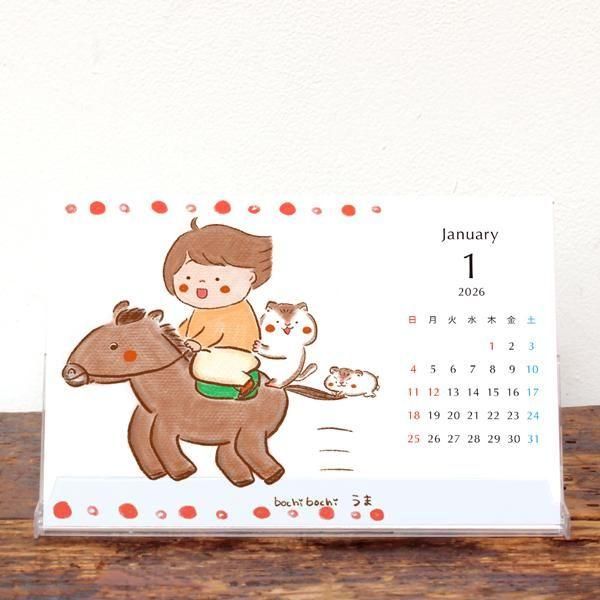 今年の干支は「うま」。うまの次はマイク、マイクのつぎは…一年をしりとりしながら、このカレンダーと共にすごしてみてくださいね。あなたの2026年がより実り豊かでありますように。
